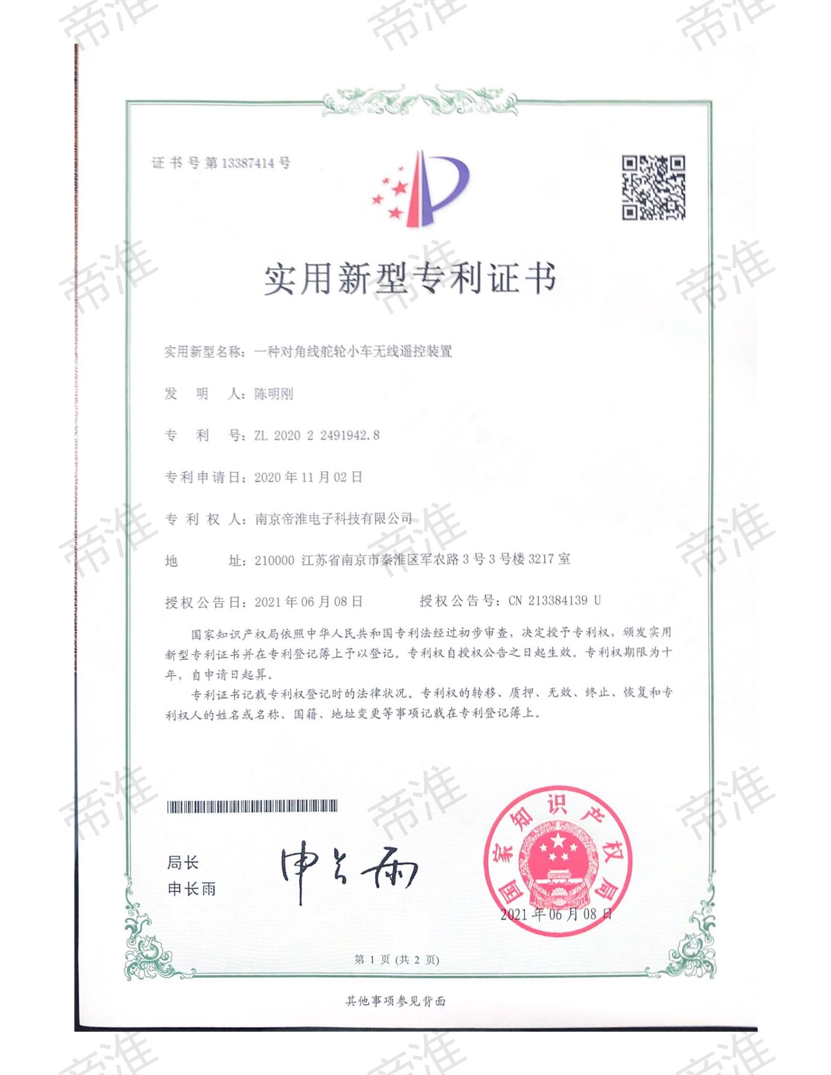 南京帝淮电子科技有限公司,国内工业遥控器行业领军企业,自主研发、定制、非标设计各类工业级无线遥控器、工业级有线控制器、智能化自主算法逻辑的本地控制器等系列产品。已经申请及正在申请的技术专利、外观专利有近三十项左右,并通过了CE欧盟认证、国家级试验检验报告、EMC电磁兼容认证等。